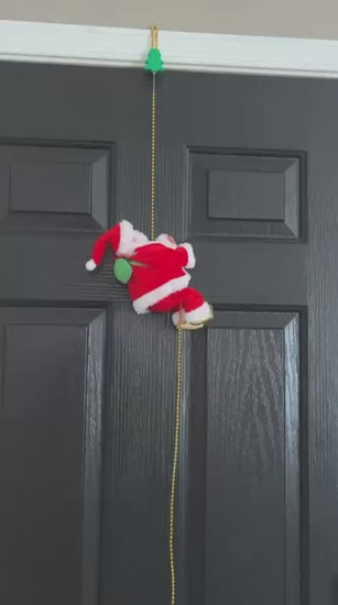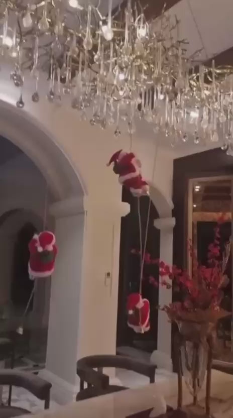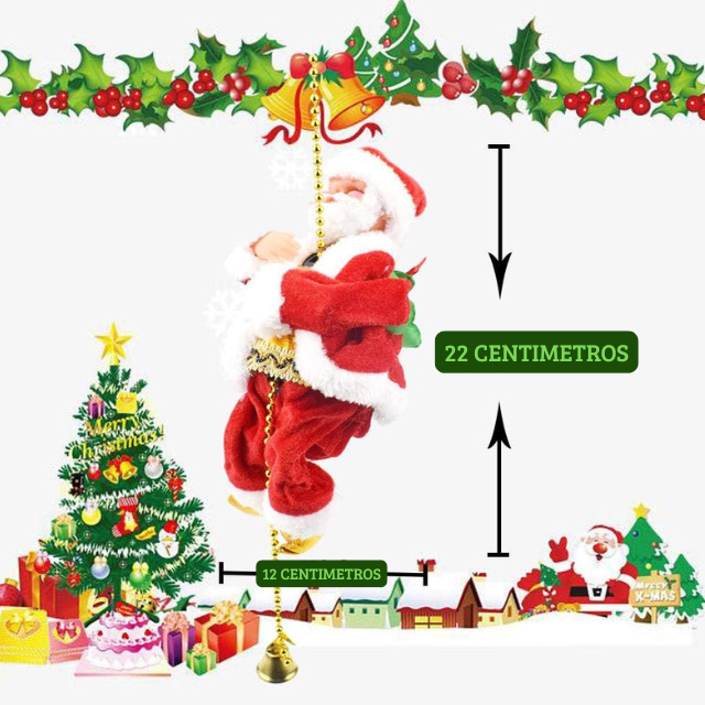 Papá Noel asciende y desciende automáticamente por una cuerda decorativa mientras suena una melodía navideña. Solo enciéndelo y el ambiente festivo comienza al instante.